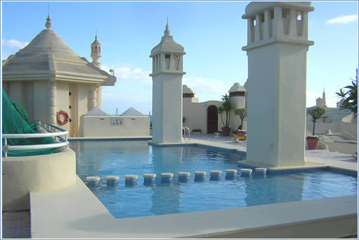 Take the lift or stairs to the roof top pool, jacuzzi and bbq. There are plenty of sun loungers by the pool too plus wonderful views over the marina.